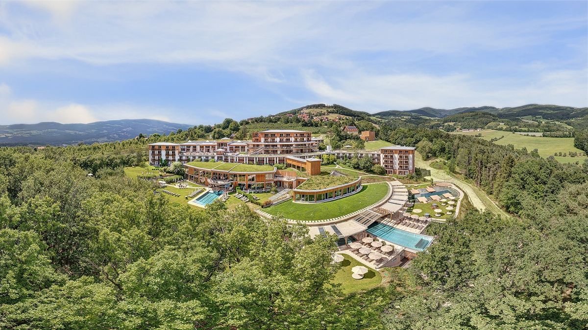 Le eleganti 116 camere e suite del parco naturale in legno massiccio della Stiria offrono una vista mozzafiato sulle dolci colline della Stiria orientale fino al castello di Riegersburg nel Vulkanland. Il paesaggio dolcemente ondulato è ideale per escursioni a piedi, in bicicletta e in esplorazione. Con la GenussCard, gli ospiti possono scoprire oltre 280 diverse mete escursionistiche nella Stiria orientale, nel Thermen- & Vulkanland, nella Stiria meridionale e nella regione di Graz, come musei, piscine all'aperto, bagni termali, piste per slittini e molto altro.